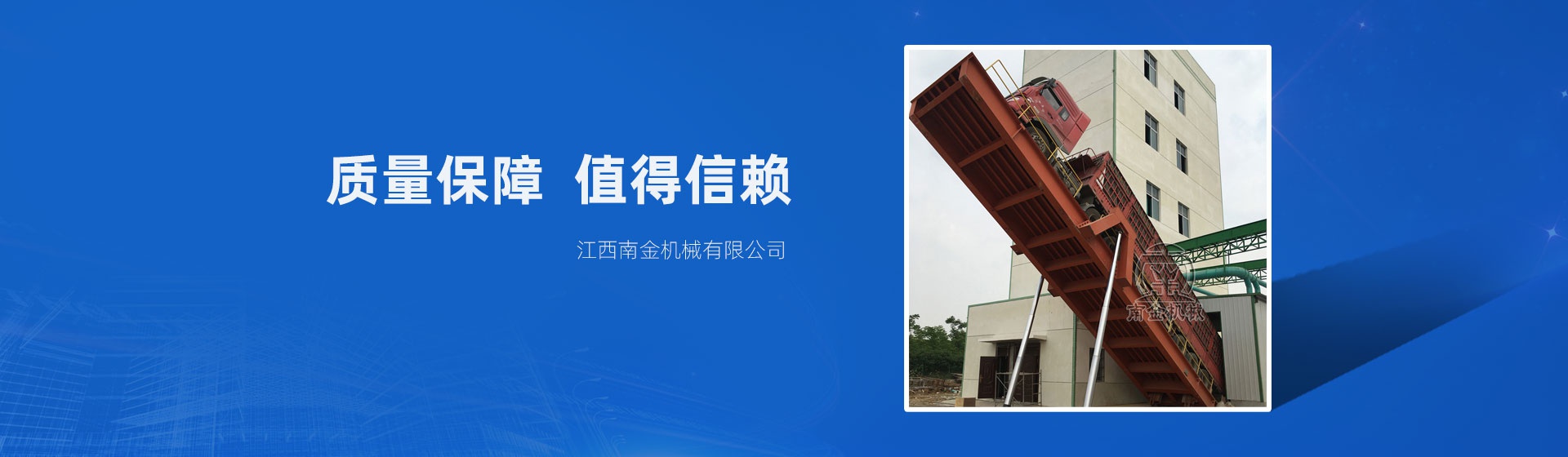 江西南金機械有限公司是一家主要從事裝卸設備研發、設計、生產、安裝及銷售為一體的型企業。其坐落于歷史文化名城—江西省贛州市。我公司的產品為系列化后翻式卸車機、側翻式卸車機及集裝箱裝卸料機。其用于各類散裝顆粒料如小麥、大豆、玉米、花生、稻谷等的自動卸載,同時也可廣泛應用于化工、冶金、礦山以及一切有散狀物料接收作業的場所。